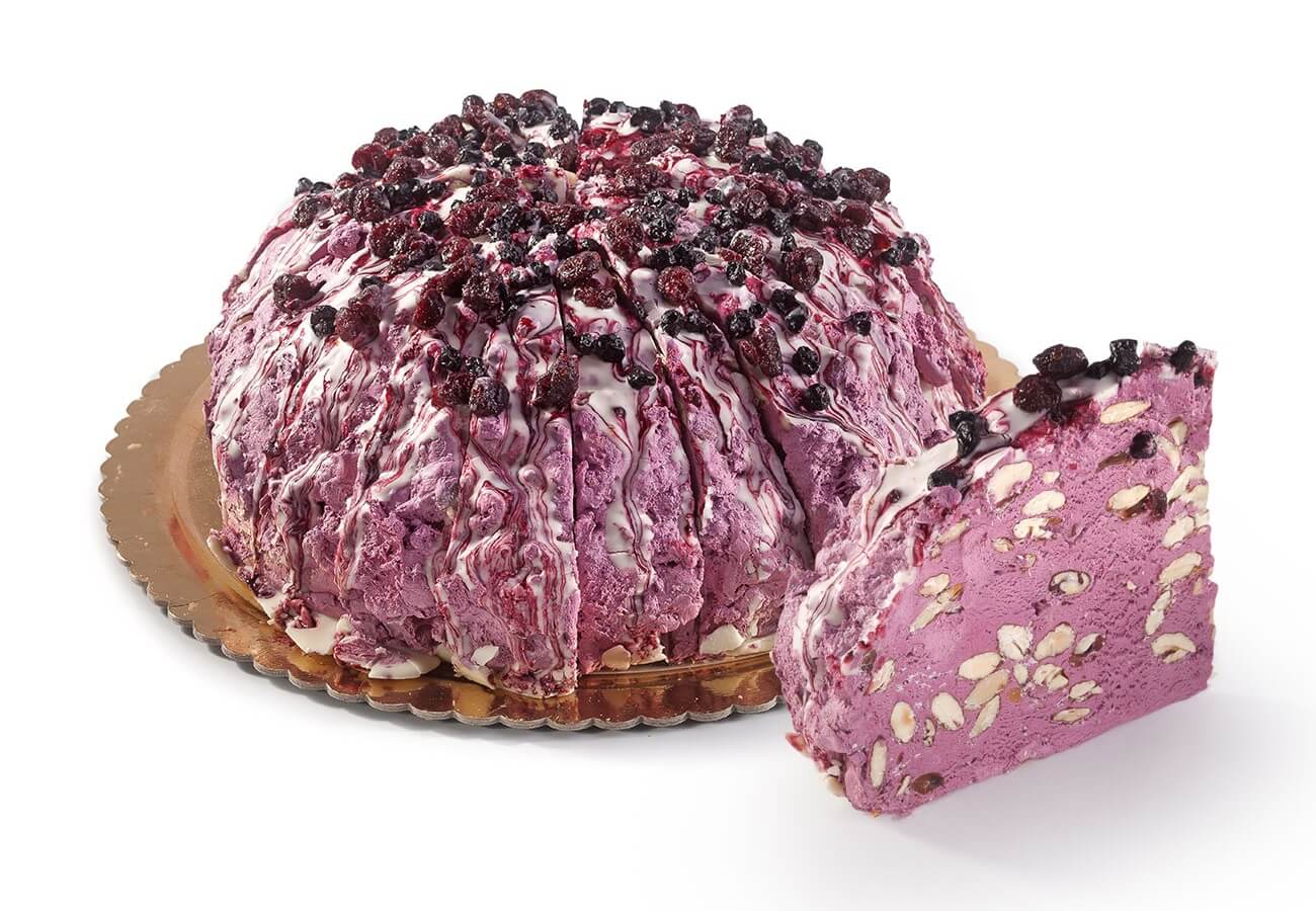 Cremet italiensk torronekage. Også kendt som "hvid nougat" eller "fransk nougat" og her tilsat vilde skovbær efter italiensk opskrift.