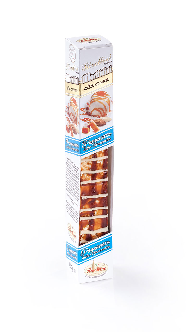 Foruden basen i Rivoltinis torrone, så tilføres også en række lækre ingredienser, således at man får en masse spændende varianter at vælge imellem herunder denne variant med panna cotta.